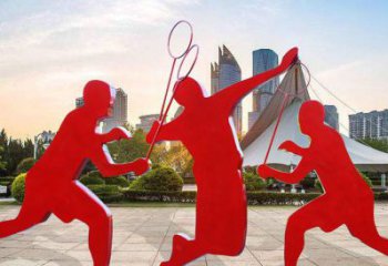 不銹鋼剪影打羽毛球雕塑