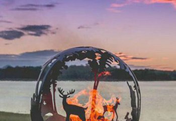 海邊創意不銹鋼鏤空梅花鹿雕塑球