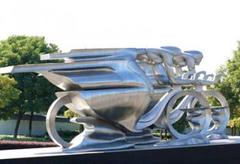 拋光不銹鋼雕塑女孩騎摩托車