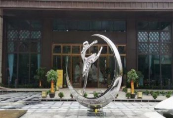 創(chuàng)意不銹鋼月亮上跳舞女孩景觀雕塑