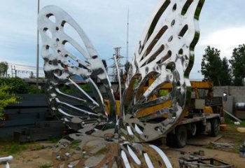 大學校園里的不銹鋼抽象蝴蝶雕塑
