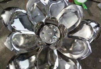 大型不銹鋼彩繪荷花噴泉水景雕塑
