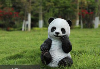 可愛熊貓雕塑,擺放玻璃鋼足球,為庭院添彩