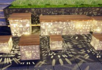 這是一組樹造型的景觀雕塑,采用不銹鋼材質(zhì)打造。雕塑形似大樹,頂部鏤空且布滿燈光,夜晚亮起時(shí),如璀璨樹冠,為場(chǎng)地增添藝術(shù)與浪漫氛圍,可供人們休憩互動(dòng)。